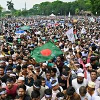 Tens of thousands of demonstrators began swarming the Suhrawardy Udyan memorial in capital Dhaka by midday, spilling out into the surrounding park.