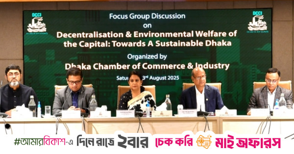 “The Road Transport Division has decided that 25-year-old buses must be removed. Transport owners now want them reclassified as 30 years old, threatening strikes if not accepted—similar to the reaction when stone extraction was halted in Sylhet,” she said at a Focus Group Discussion (FGD) titled “Decentralisation and Environmental Welfare of the Capital: Towards a Sustainable Dhaka” at the DCCI Auditorium, Motijheel. An expert panel discussed solutions to make Dhaka more livable and environmentally sustainable.