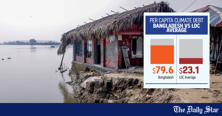 The financial burden on Bangladeshi citizens is starkly disproportionate. According to the study, Bangladesh’s cumulative climate-related borrowing from 2002 to 2023 has created a per capita debt burden of $79.61, about 3.5 times higher than the average for Least Developed Countries (LDCs), which stands at $23.12.