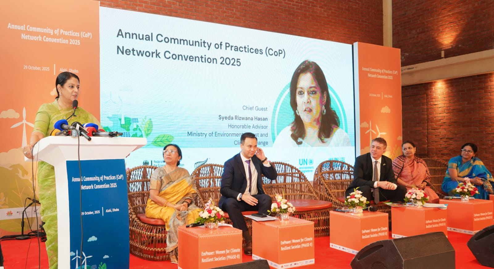 “Though change may not always be in our control, the struggle for survival surely is—and it is the women in our families who inspire that resilience every day,” she said while addressing the Annual Community of Practices (CoP) Network Convention 2025 – EmPower: Women for Climate Resilient Societies (Phase-II) held at Aloki, Dhaka.