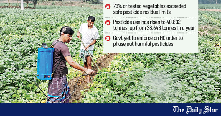 At least 17 active pesticide ingredients, identified as highly unsafe worldwide, are being used in Bangladesh, posing serious risks to public health and the environment, a new study has found.
