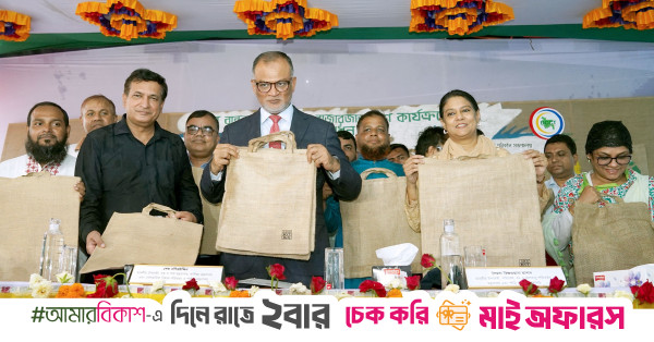 Special guest Sheikh Bashir Uddin, adviser to the Ministry of Textiles and Jute, Ministry of Commerce, and the Ministry of Civil Aviation and Tourism, also addressed the event. The programme was chaired by Md Abdur Rouf, secretary of the Ministry of Textiles and Jute. Among others, Additional Secretary of the Ministry of Environment, Forest and Climate Change Dr Fahmida Khanom, Director General of Department of Jute Zinat Ara, and leaders of the Karwan Bazar Traders’ Association also spoke.