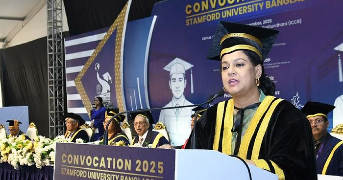 Delivering the convocation address at Convocation 2025 of Stamford University Bangladesh at the Expo Village of the Bashundhara International Convention Center, she said building an environment-friendly, humane and women-friendly society requires responsible engagement from everyone in their respective roles.