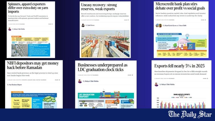 The Star Business pages of The Daily Star highlighted a series of major developments in the national economy last week. Among them, six reports delved deep into pressures on exports, financial stability concerns, policy debates, and longer-term structural challenges.