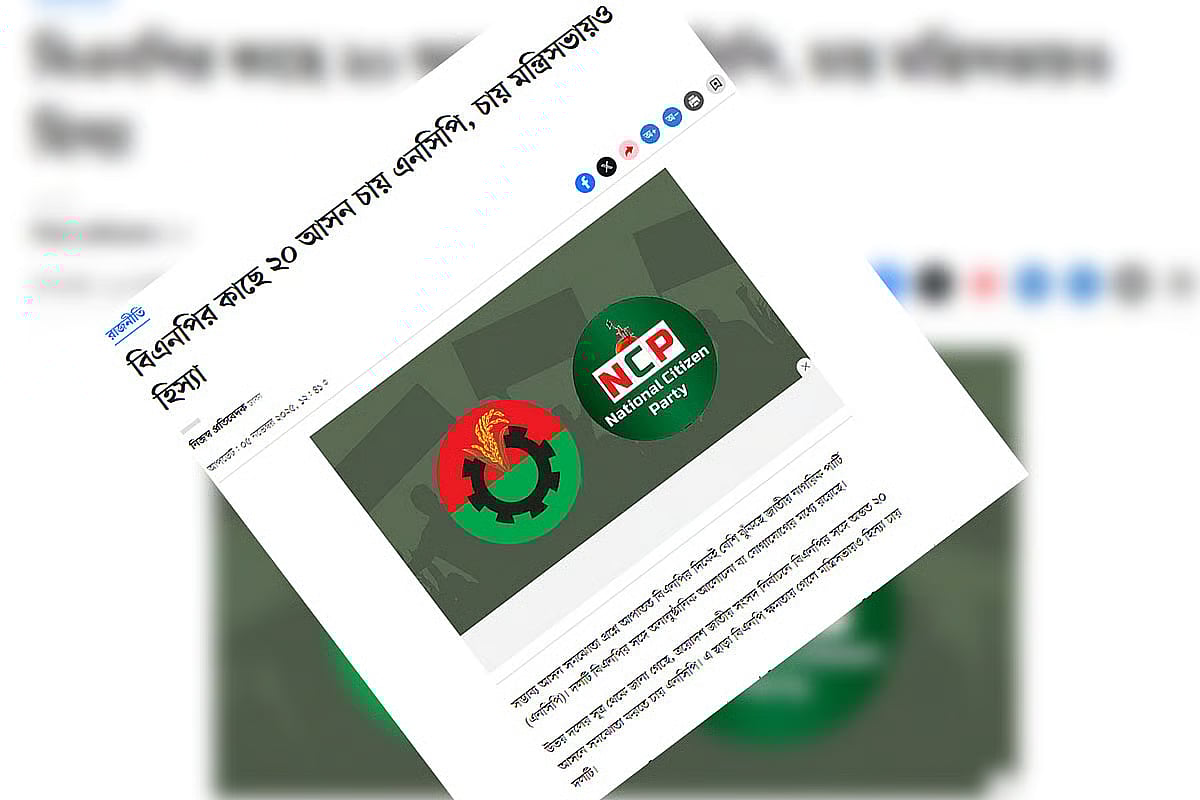 The National Citizen Party (NCP) has issued a rejoinder regarding the news report titled “NCP wants 20 seats from BNP, also seeks share in the cabinet” published in Prothom Alo Online and the print edition on Wednesday.