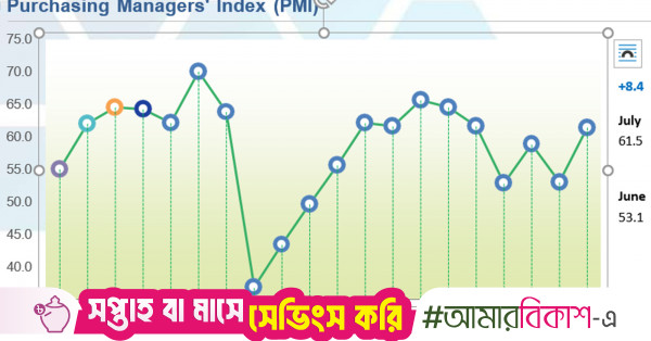 Bangladesh’s economic activity expanded at a faster pace in July, with the country’s Purchasing Managers’ Index (PMI) rising by 8.4 points to reach 61.5, according to the latest data released today (7 August).