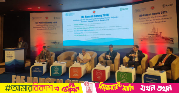 The results were unveiled at a programme titled “EAF-Nansen Survey 2025 Findings and Way Forward for Sustainable Marine Fisheries Resource Management in Bangladesh,” held yesterday at a Dhaka hotel. The event was organised jointly by Food and Agriculture Organization (FAO), the Ministry of Fisheries and Livestock, and Norad — coinciding with FAO’s 80th anniversary and five decades of Bangladesh-FAO partnership.