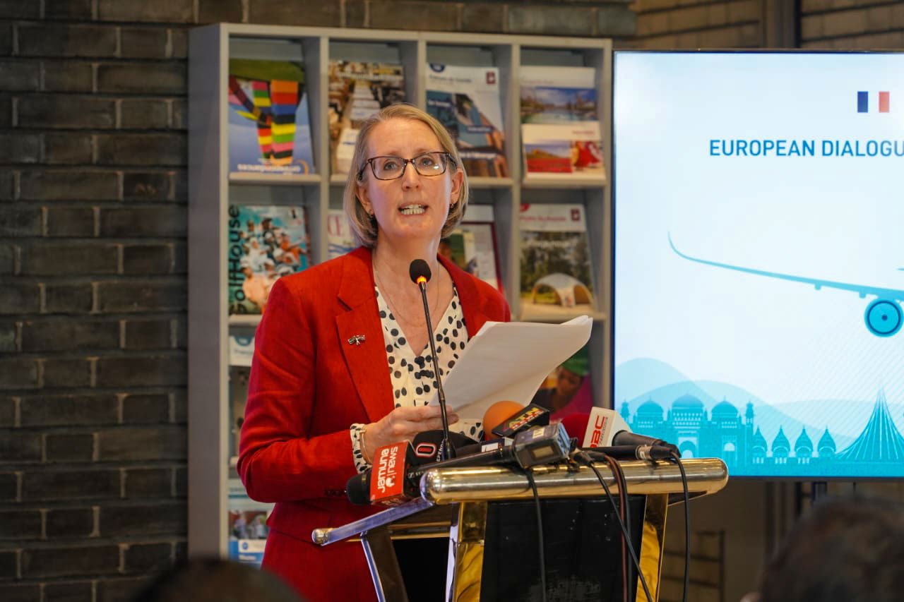 British High Commissioner to Bangladesh Sarah Cooke spoke at an event titled “European Dialogue on Bangladesh Aviation Growth” held at the French Embassy in Dhaka today. Photo: UK HC